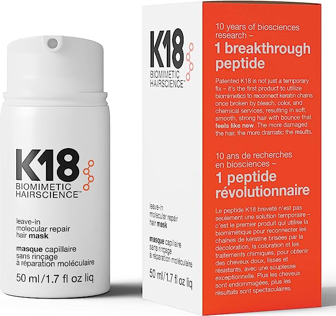 A leave-in treatment mask that works on the molecular level to reverse hair damage in just 4 minutes. The K18PEPTIDE™ is clinically proven to repair damage from bleach + color, chemical services and heat* – with immediate and lasting results to restore strength, softness, smoothness and bounce to hair.
