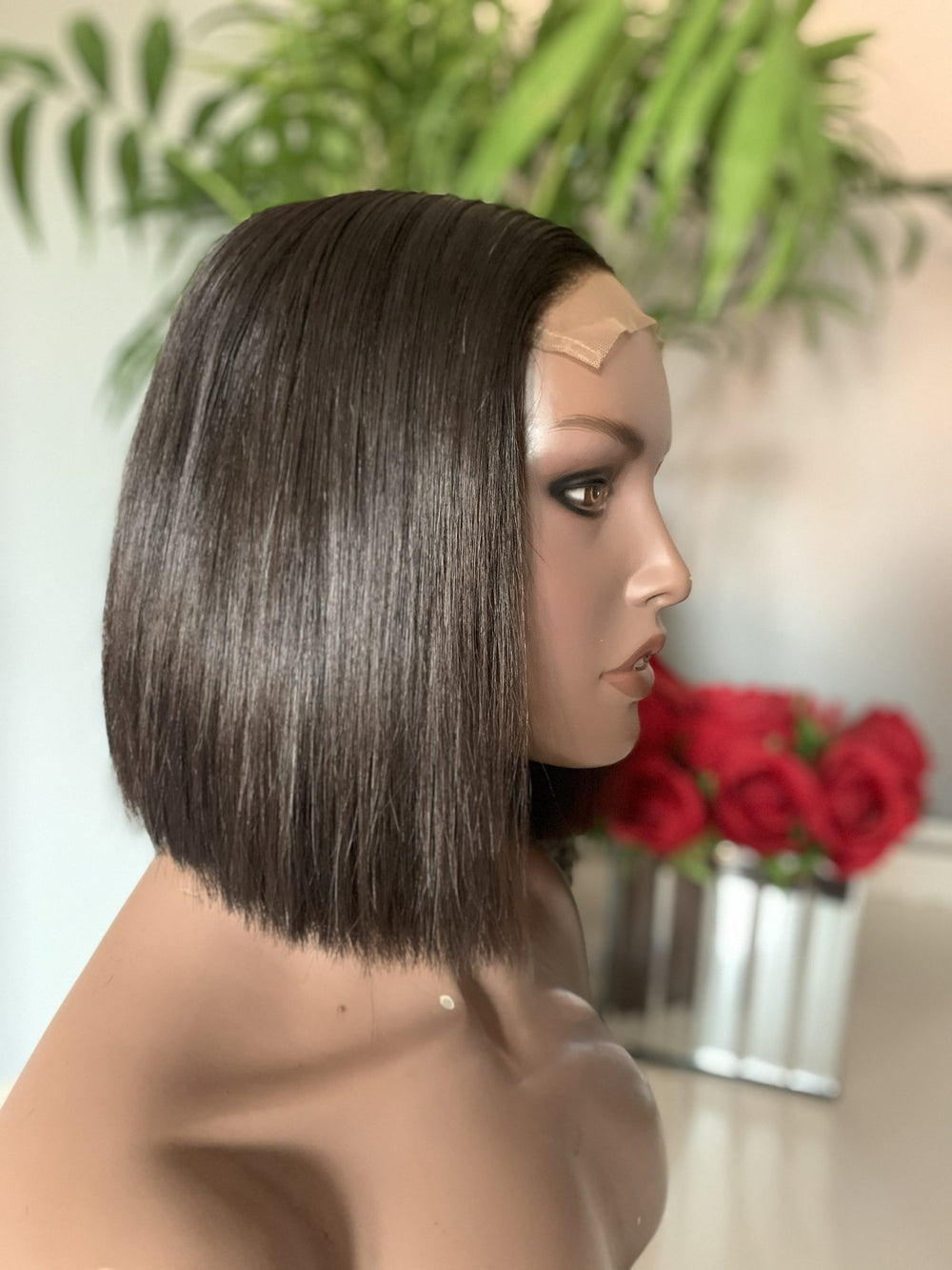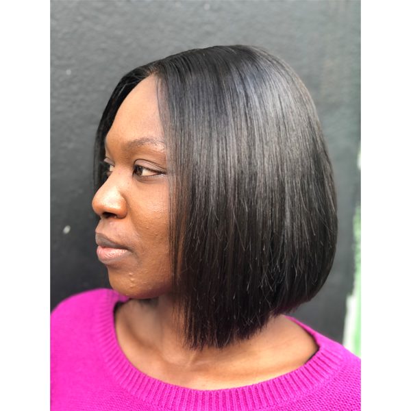 The one bundle unit is exactly that, a wig unit made with just one bundle and a closure, cut to into a bob in either a side part or middle part made of our Diamond hair. This wig is for those who want a light hairstyle without any fuss.